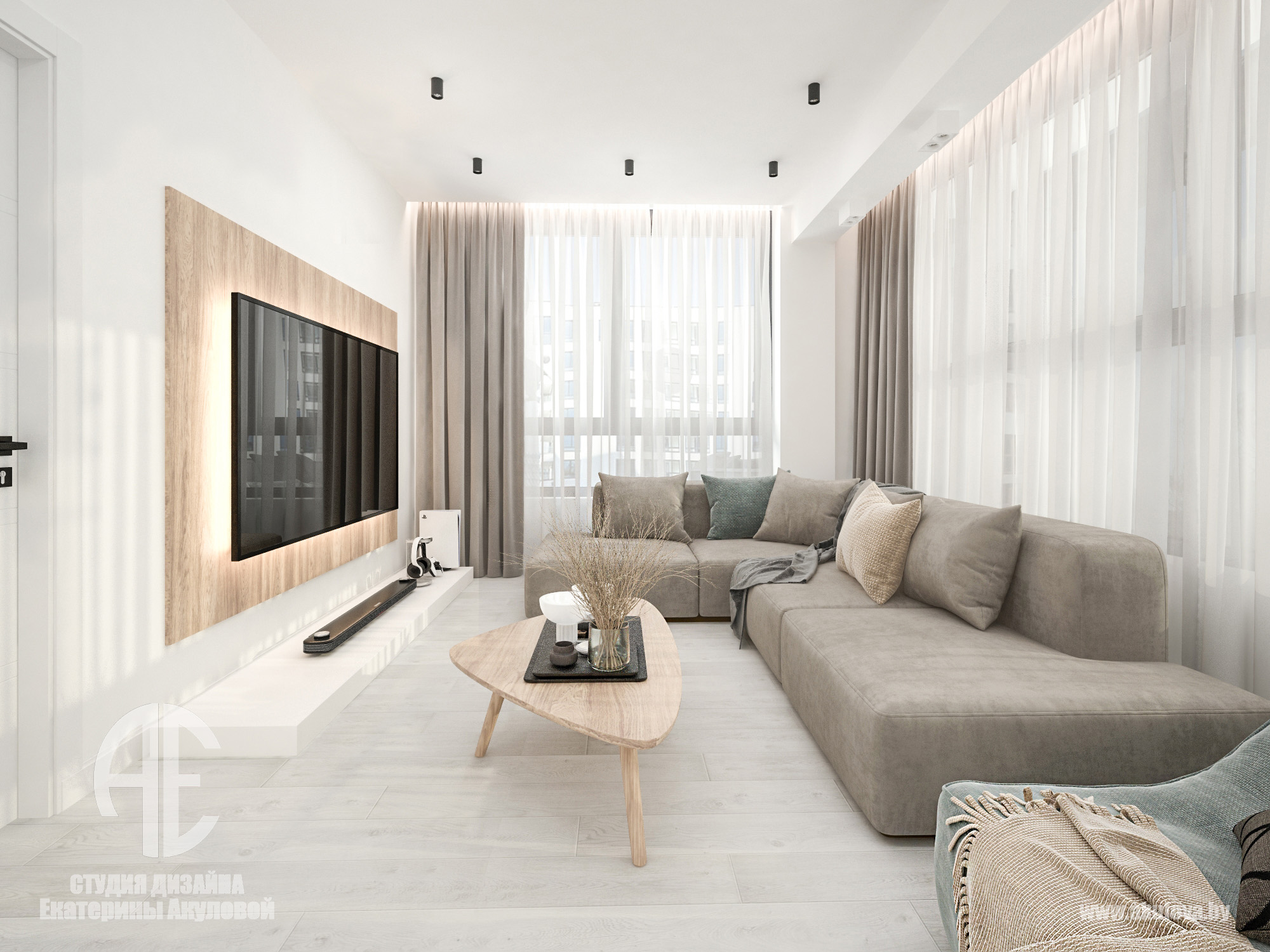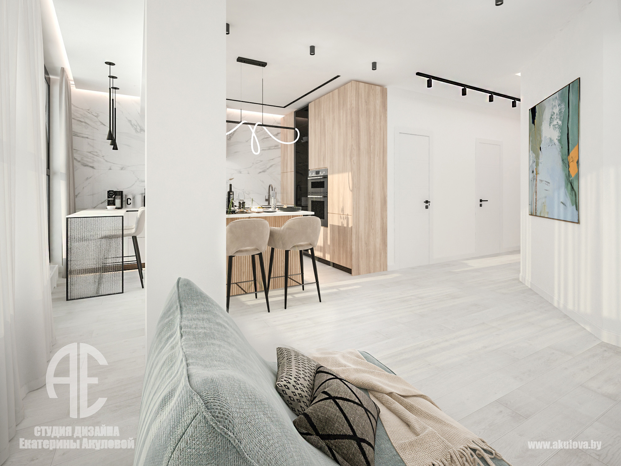 Дизайн интерьера трехкомнатной квартиры в ЖК Маяк Минска, на ул. Мстиславца, 12, общей площадью 78 м2