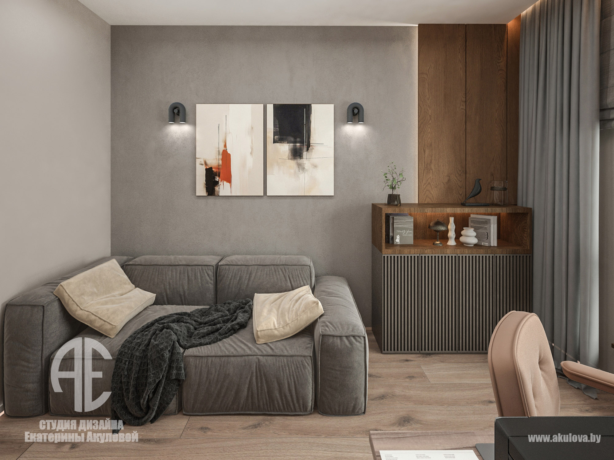Дизайн интерьера 3-х комнатной квартиры в ЖК Royal Residence, г. Варшава, общей площадью 67 м2