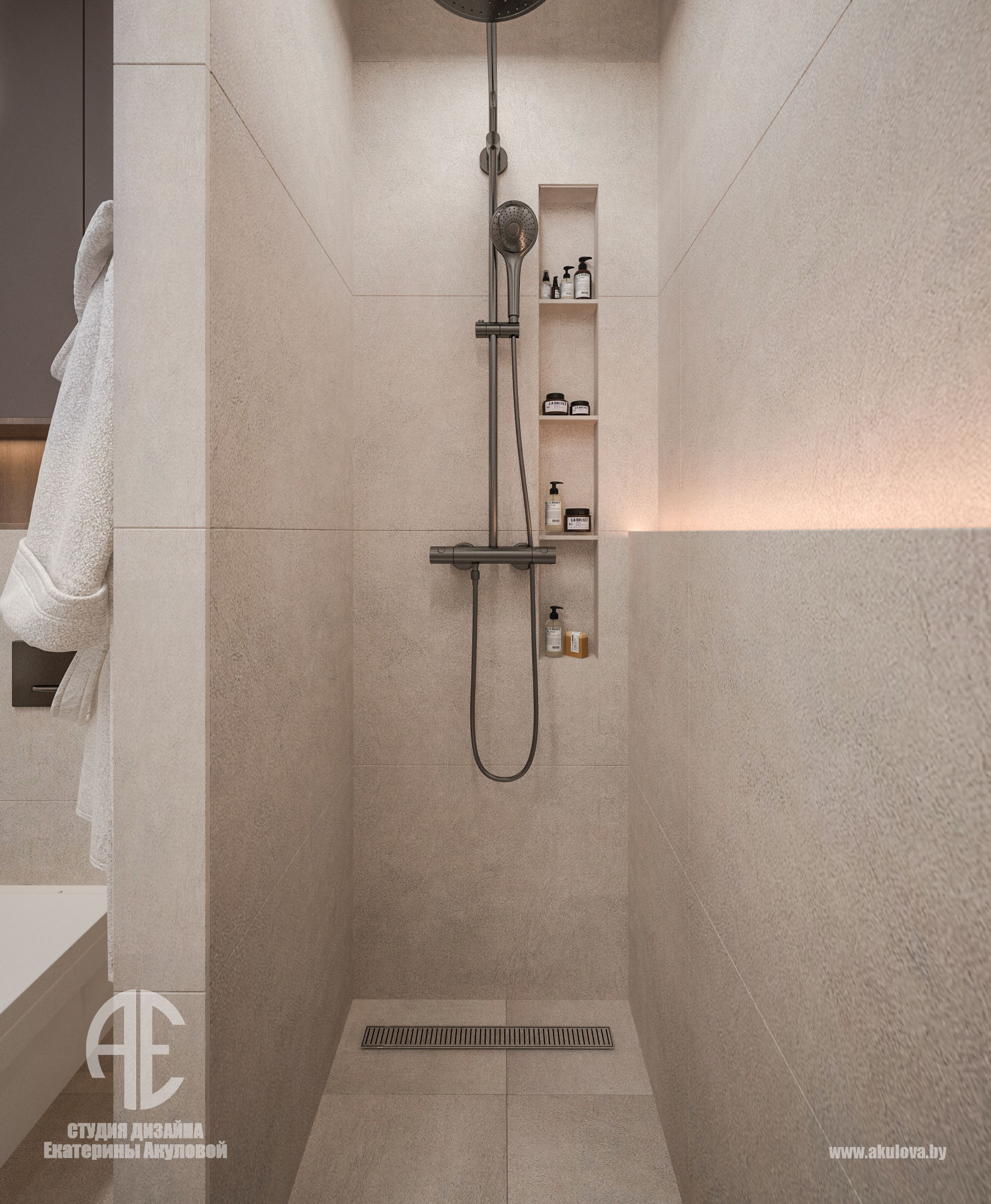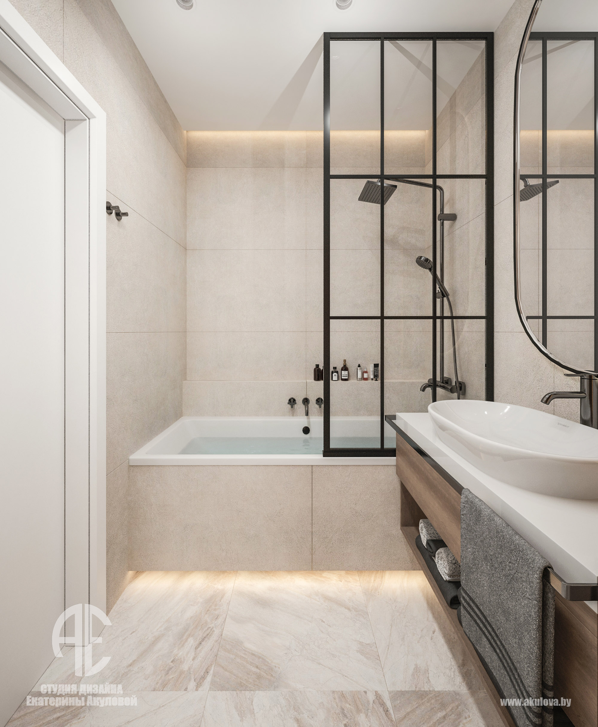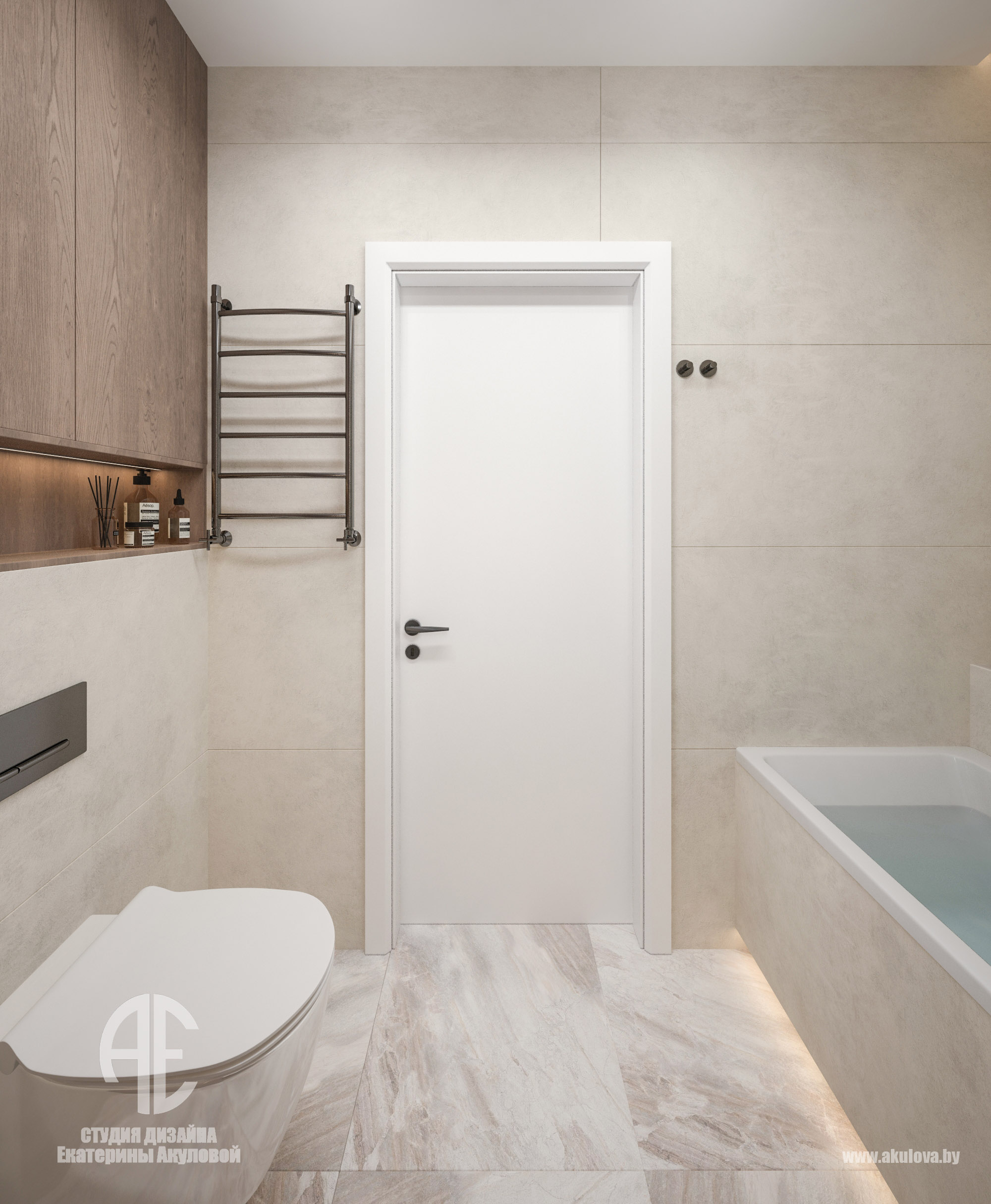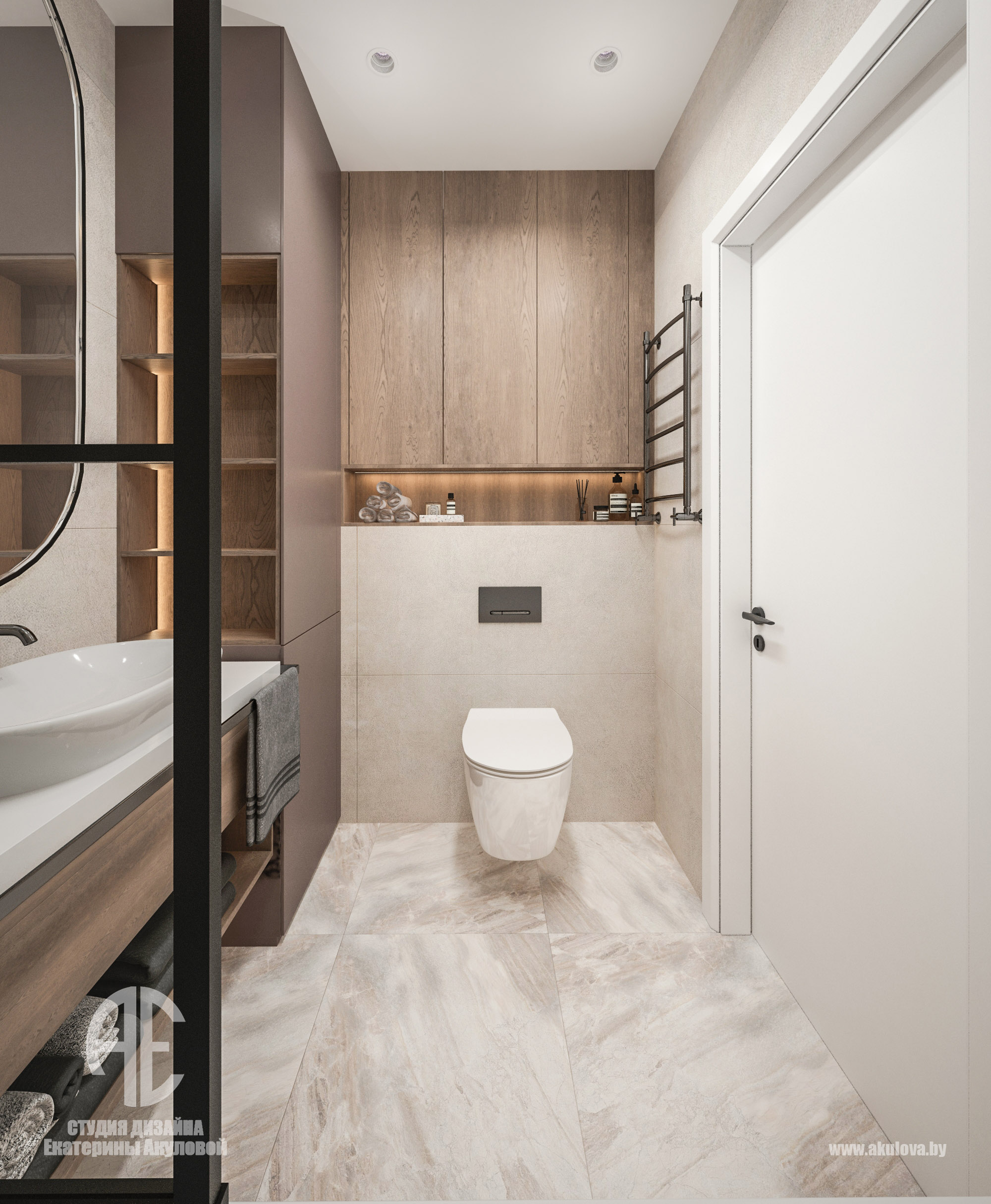 Дизайн интерьера двухкомнатной квартиры для молодой семьи разрабатывался в ЖК «Северный Берег», расположенного в уникальном месте на берегу Цнянского водохранилища. Первоначальная планировка квартиры предусмотрена застройщиком, как квартира со свободной планировкой, что дает расширенные возможности по организации внутреннего пространства. Преимущество данной квартиры в том, что квартира имеет два достаточно больших санузла, расположенных в разных частях квартиры, что дает возможность организовать планировку с выделенной мастер-спальней, получив при этом приватный блок для хозяев, включающий не только спальню, но и отдельную ванную комнату и гардеробную. В итоговом планировочном решении из общего пространства выделили зону кухни с выделенной зоной гостиной, мастер-спальню и отдельный кабинет. Прихожая отделена от жилых зон, также дополнительно выделена комната для хозяйственного назначения.