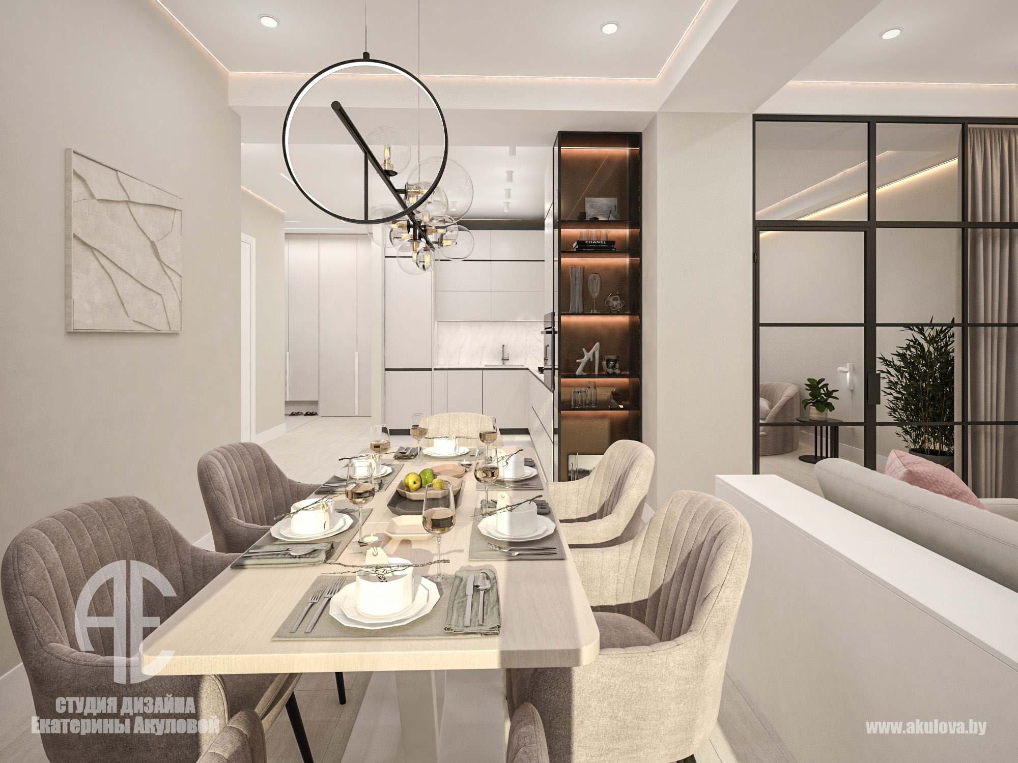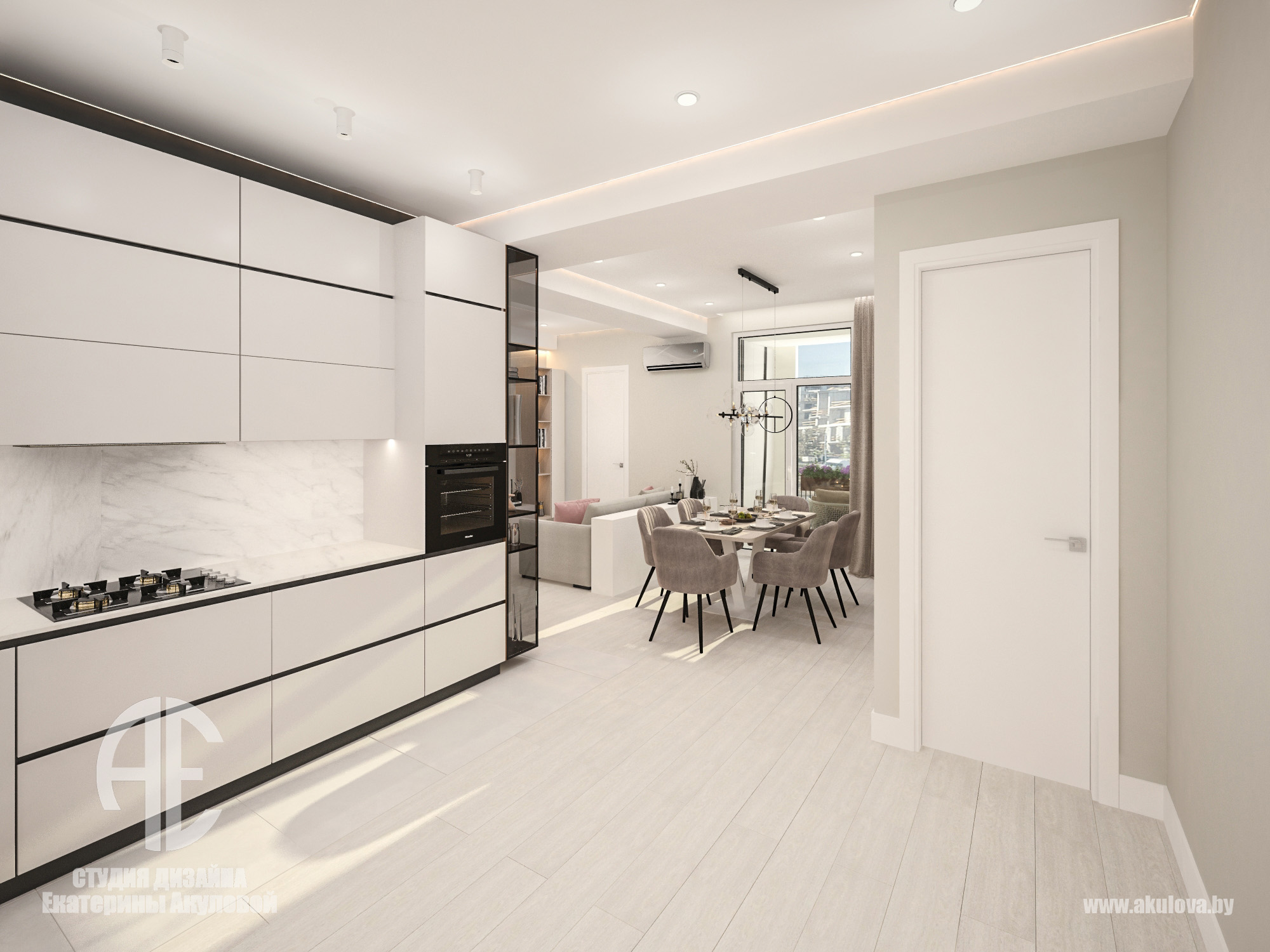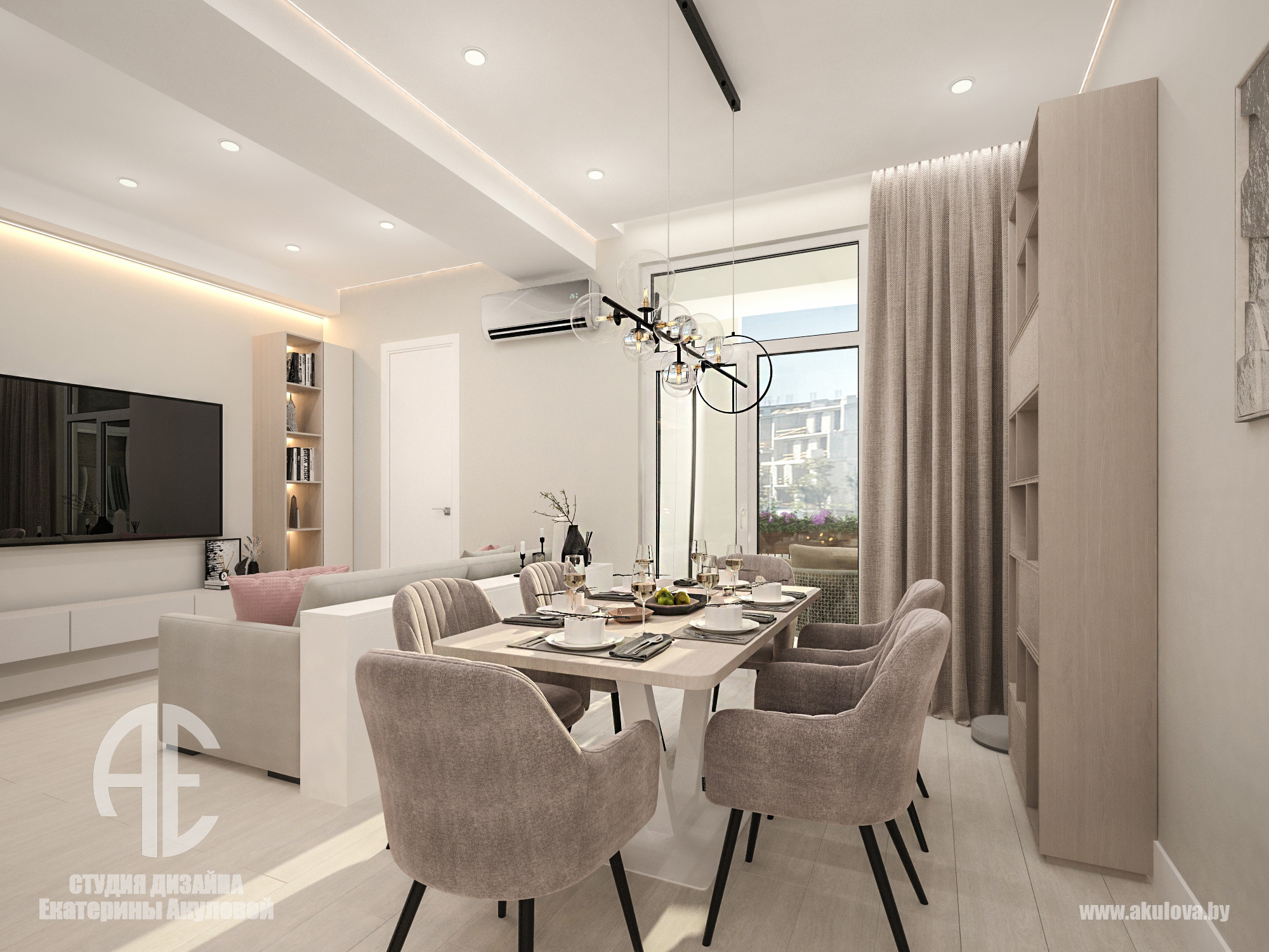 Дизайн интерьера трехкомнатной квартиры в ЖК Premium House Vepkhistkaosani, г. Тбилиси, Грузия, общей площадью 82 м2