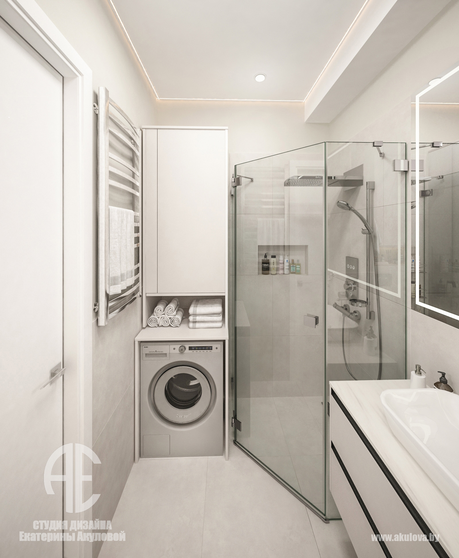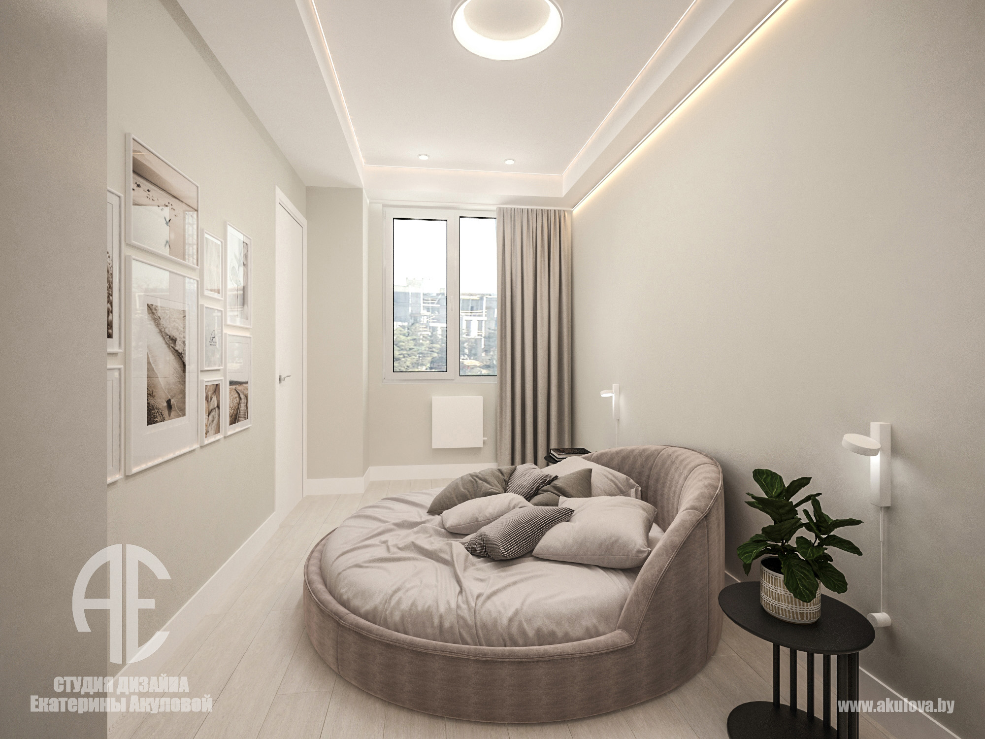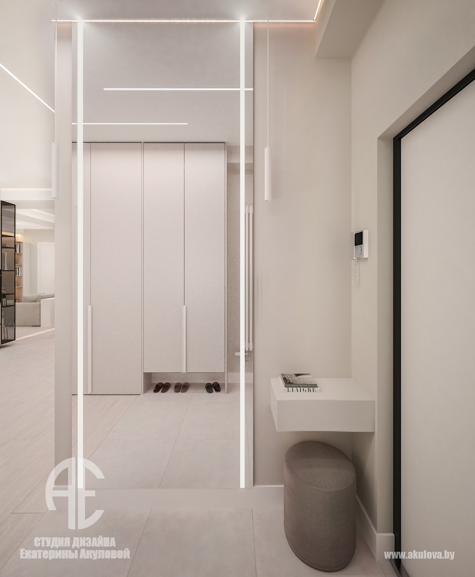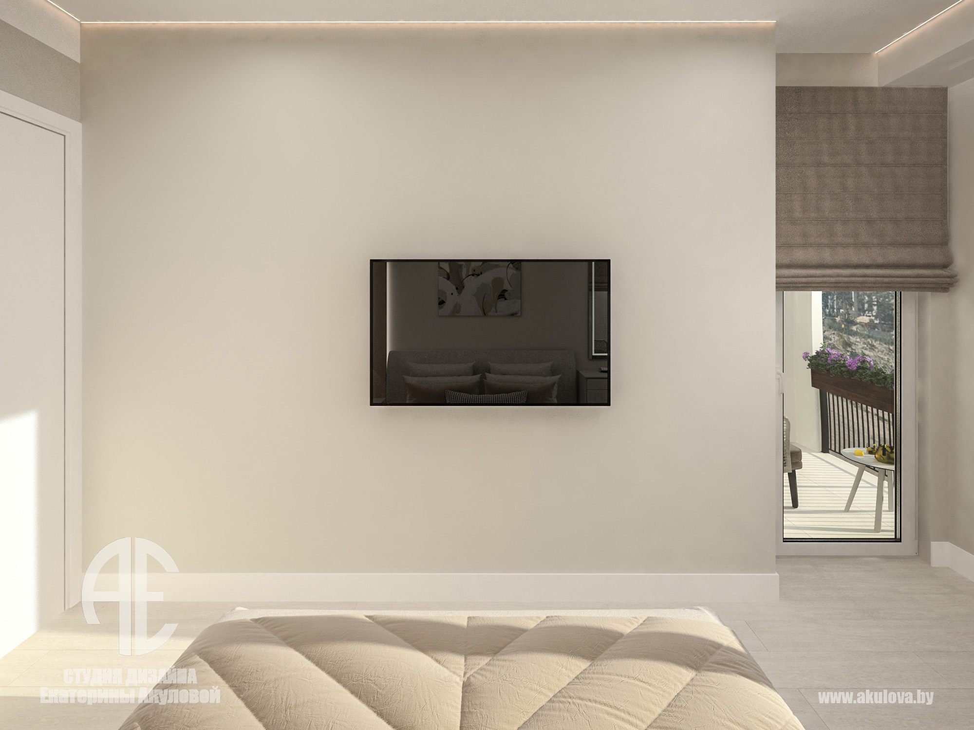 Дизайн интерьера квартиры выполнен в современном стиле в светлой гамме. Одной из задач для дизайнера являлось увеличение пространства, грамотное планирование необходимого функционала, а также декорирование несущих балок, расположенных на потолке по всему периметру квартиры. Увеличить пространство в общей зоне квартиры нам удалось за счет демонтажа стены и дальнейшей установки стеклянной перегородки между комнатами. По планированию функционала в квартире получилось выделить большую зону гостиной, совмещенной с кухней, спальню с отдельным выходом на балкон, гостевую комнату. Также удалось разместить дополнительные зоны хранения: гардеробная комната, две кладовые комнаты и совмещенный санузел. Балкон в квартире небольшой, но это не главное, поскольку даже небольшой балкон способен стать уютным и приблизить нас к природе. Здесь можно любоваться местными красотами солнечного города Тбилиси. В целом, получилась очень уютная и современная квартира, которая будет радовать своих новых хозяев.