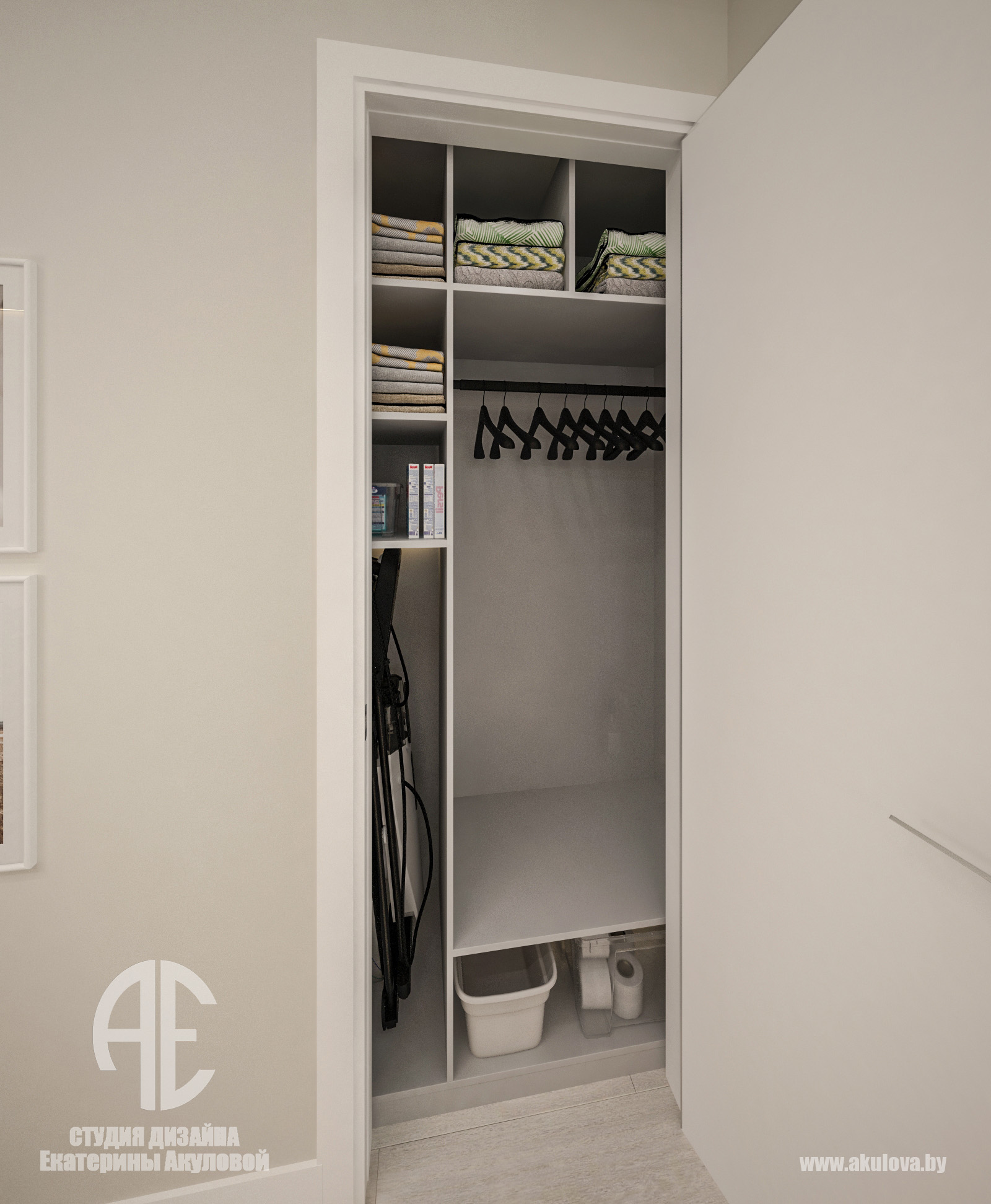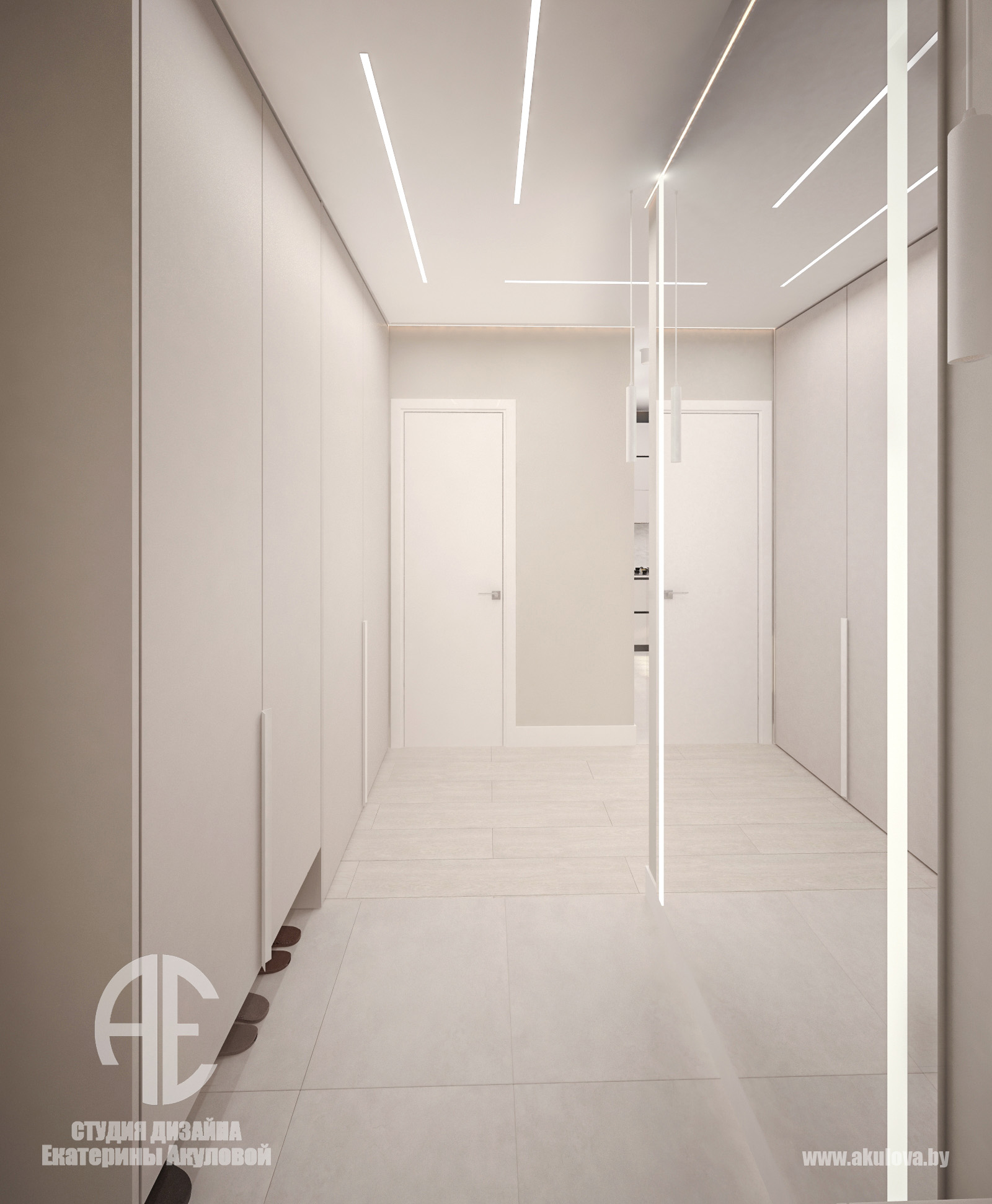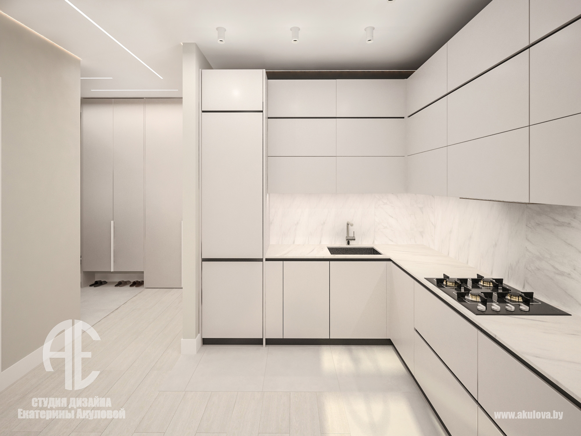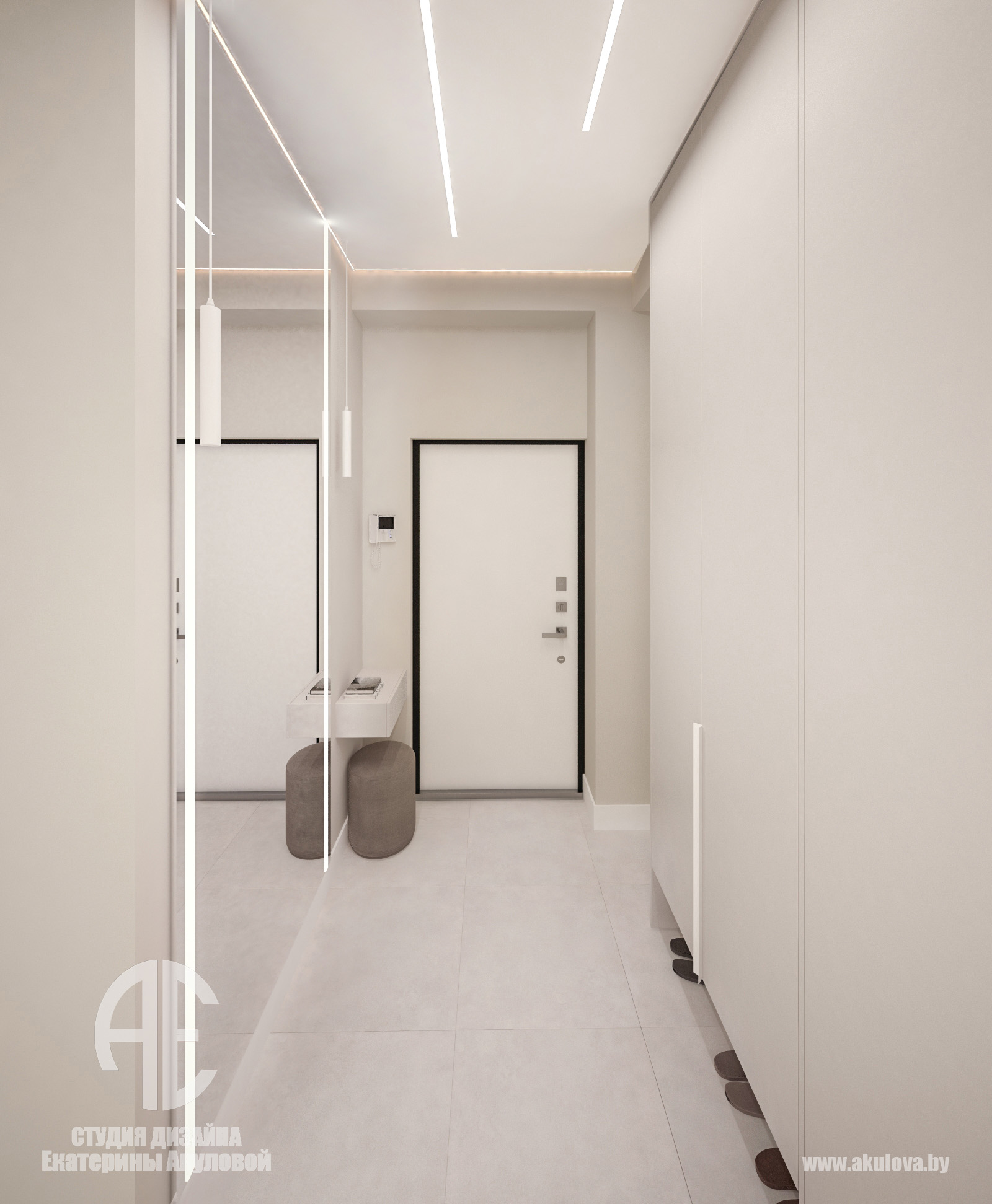 Дизайн интерьера квартиры выполнен в современном стиле в светлой гамме. Одной из задач для дизайнера являлось увеличение пространства, грамотное планирование необходимого функционала, а также декорирование несущих балок, расположенных на потолке по всему периметру квартиры. Увеличить пространство в общей зоне квартиры нам удалось за счет демонтажа стены и дальнейшей установки стеклянной перегородки между комнатами. По планированию функционала в квартире получилось выделить большую зону гостиной, совмещенной с кухней, спальню с отдельным выходом на балкон, гостевую комнату. Также удалось разместить дополнительные зоны хранения: гардеробная комната, две кладовые комнаты и совмещенный санузел. Балкон в квартире небольшой, но это не главное, поскольку даже небольшой балкон способен стать уютным и приблизить нас к природе. Здесь можно любоваться местными красотами солнечного города Тбилиси. В целом, получилась очень уютная и современная квартира, которая будет радовать своих новых хозяев.