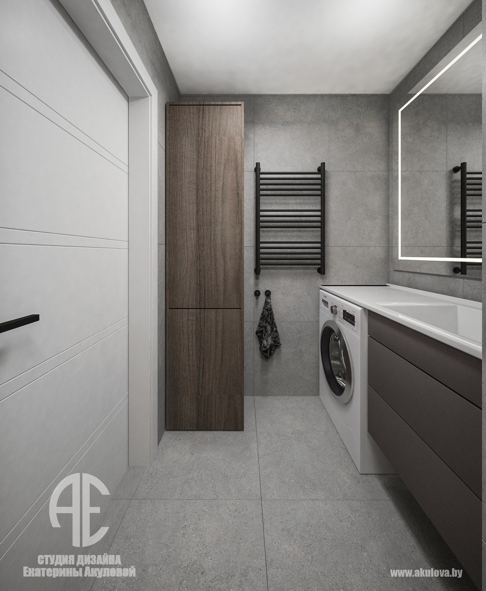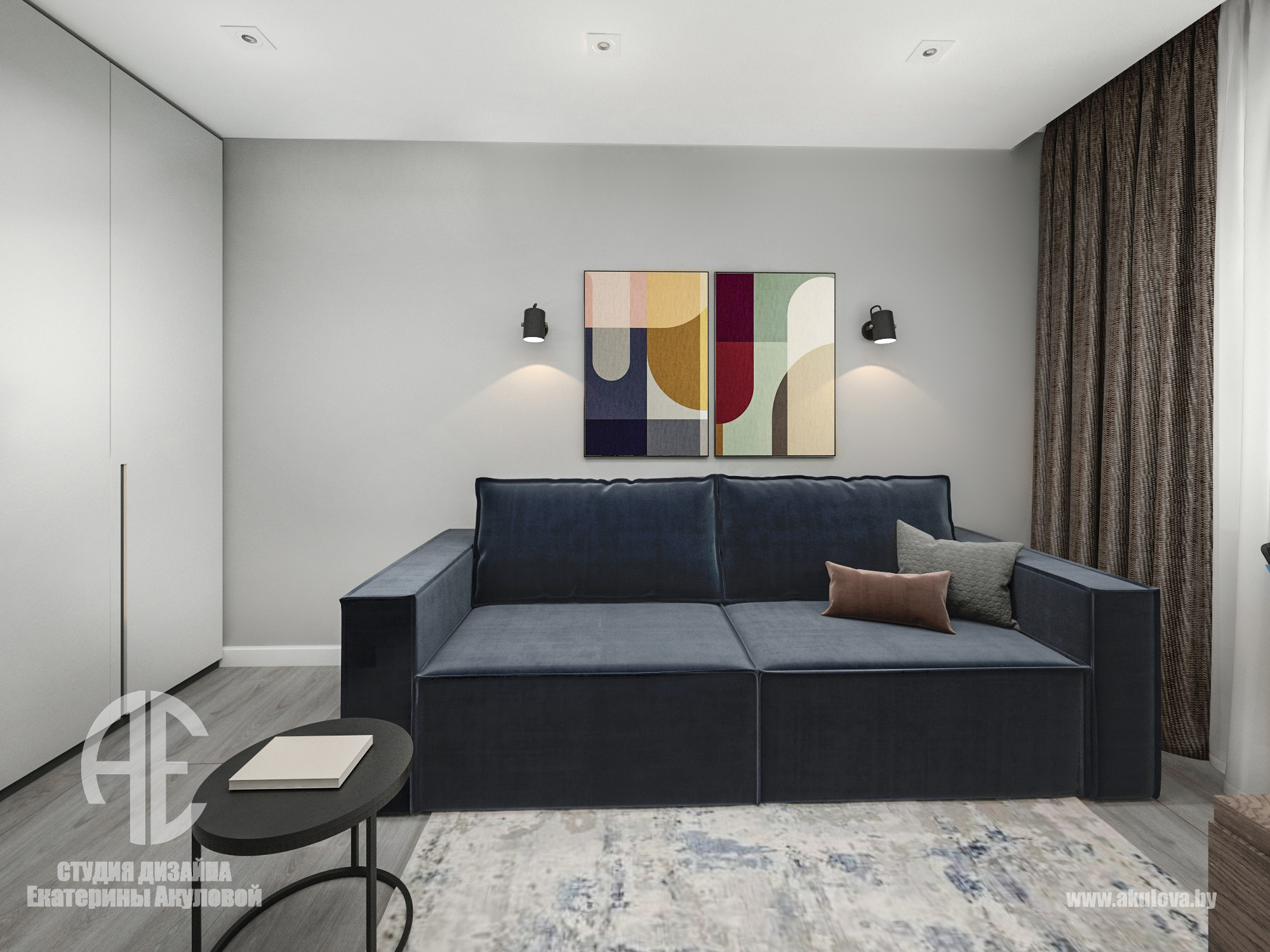 Дизайн интерьера квартиры разрабатывался для молодого человека в современном стиле. Гамма выдержана в свето-серых тонах. Серый цвет является прекрасным фоном для использования цветовых акцентов. Мягкость интерьеру прибавляет наличие дерева в отделке. Сочетание нескольких мягких оттенков подходит как для небольших комнат, так и для просторных. В дизайне кухонного пространства также использовалась серая гамма. Добавив в интерьер белых элементов, таких как тв тумба, обеденный стол, мы освежаем и разбавляем гамму, чтобы создать стильный интерьер. Интерьер должен быть уютным и располагать к отдыху и релаксу. Особое внимание уделили освещению в квартире, проработав различные световые сценарии.